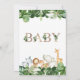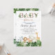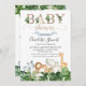Chá de fraldas Dourado de Safari Verde Convite para chá de fraldas de safari moderno, com uma falsa palavra e texto de ouro, quatro animais safari de aquarela e uma folhagem ousada verde e dourada. O design também apresenta um banner azul de fita de cor d'água. Uma design para um chá de fraldas neutro em termos de gênero.