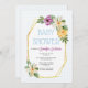Convite Dourado polígono, flores bolinhas chá de fraldas f