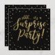 Celebre seu dia especial com este modelo de convite de festa surpresa moderno. Este design apresenta uma tipografia dourada elegante "shhh... é uma festa surpresa!" com gráficos de confetes dourados. A cor do fundo é preta, mas você pode alterá-la. Perfeito para celebração de aniversário de casamento com tema moderno em dourado e preto.