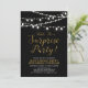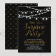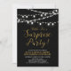Celebre seu dia especial com este convite de aniversário surpresa sofisticado! Este design apresenta uma tipografia de roteiro elegante e cordas de luz sobre um fundo preto. Perfeito para uma festa no jardim, festa no celeiro ou qualquer festa surpresa.