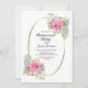 Um convite de festas de aposentadoria cor-de-rosa, bordado por ouro.