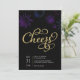 Convide os amigos para telefonarem no Ano Novo com o convite para a festa de na moda e o dia de férias. Design apresenta ilustrações de fogos de artifício coloridos, azuis e roxos e o texto "Saúde" em um lindo e elegante roteiro, com letras de digitação em um fundo preto. Adicione seus detalhes de festa em letras brancas correspondentes.