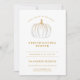 Simples e bonitinho convites jantes com detalhes de janto com bombas de água branco de cor branca de na moda. A parte traseira da placa tem um padrão de abóbora branco dourado em um fundo branco limpo. Estes convites modernos de amizade de abóbora são perfeitos para a sua reunião de férias. Feliz Dia de Ação de Graças!