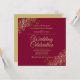 Este belo convite de casamento apresenta um design simples, mas elegante, com texto em dourado sobre um fundo vermelho-marrom ou burgundy com bordas florais douradas em falso foil. Dê as boas-vindas aos seus convidados para compartilhar o dia especial da sua celebração de casamento com esses convites lindos que apresentam texto em dourado. Um casamento é uma celebração de amor, amigos e familiares que acontece uma vez na vida. Faça da sua celebração nupcial algo verdadeiramente memorável com esses convites bonitos e elegantes. Este convite é totalmente personalizável, para que você possa alterar o texto de acordo com a sua situação e necessidades.
