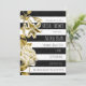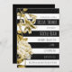Dourado Tone Floral Black & White Striped Invitation. Personalizar para qualquer evento.