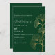 Um fundo verde esmeralda decorado com folhas simples de ginkgo ouro. Personalize e adicione seus nomes e detalhes.