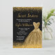 Um lindo vestido elegante de aquarela, com o tema do ouro, vestido em fundo preto com falso brilho na parte superior e inferior da carta. Todo o texto pode ser personalizado para atender às suas necessidades.