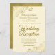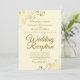 Este simples convite foi feito para convidados para a recepção, mas não para a cerimônia de casamento propriamente dita. Apresenta um design elegante e na moda com a inscrição de um script em ouro de rico em um marfim, natas ou esbranquiçados e caramujos e espirais nos cantos do ouro. Uma bela maneira de convidar seus amigos e família para comemorar com você!