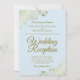 Convite Dourados e Azul Claro Elegante Recepção de Casamen