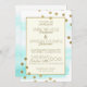 O convite para casamento da base azul de aqua azul festiva e moderna, emoldurado em ouro e acentuado com pontos de confete de ouro impressos com convite para casamento formal de design.