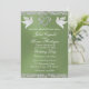 Esta design romântica apresenta um elegante fundo verde sábio com bordas reluzentes, um delicado coração prateado e pombos com detalhes para o evento em uma escrita elegante na frente e um código QR, um espaço reservado monograma e lugar para o seu site na parte de trás. Também disponível com diferentes planos coloridos para as cores do tema do casamento. (O brilho é simulado no trabalho de arte). Concebido para coordenar a Coleção de Casamentos "Dois Tornar-se-ão Um - Corações, Doves & Glitter". Para alterar os detalhes, clique em "Personalizar". Para mover o texto ou alterar o tamanho, a fonte ou a cor do texto, clique em "Clique para personalizar mais"