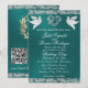 Convite Dove, Silver Heart & Glitter, QR Code - Teal