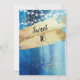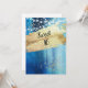Convite de Doze Anos elegante com fundo de aquarela azul, pinceladas de tinta dourada, diamantes cintilantes e luzes de corda. Um design moderno e atual para o seu dia especial.