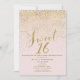 Convites de DOZE ANOS Rosa Corado & Confetes Dourados.