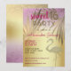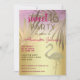 Elegante, sofisticado, exclusivo, silhueta de flamingo em relevo dourado combinado com um adorável fundo rosa e dourado brilhante com folhas de palmeira douradas. Convite de aniversário de 16 anos Sweet 16 moderno e atraente.