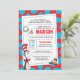 Convide seus convidados para um gato cheio de diversão no chá de fraldas temático do Chapéu com este convite lúdico e vibrante. Apresentando o icônico Gato no Chapéu do Dr. Seuss, este convite dá o tom para uma celebração caprichosa. Quer você esteja hospedando uma chá para um menino ou menina, esta design traz uma vibração alegre e festiva para o seu evento. Perfeito para os fãs do Dr. Seuss, ele adiciona um toque criativo e memorável aos seus convites para o chá de bebê.