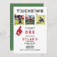 Escolha este Dragão Americano de Futebol Turning One primeiro aniversario e celebre o primeiro aniversário do seu dragão bebê com todos os seus amigos e família. O convite contém 3 fotos no lado frontal e uma no verso. Personalize o convite com os detalhes da sua parte e solicite seus convites agora.