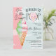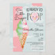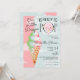 Escolha este lindo Dragão Bebê Pronto para Pop Tint & Pink Sorvete Chá de fraldas Cartão de Convite com uma ilustração aquarela de um cone sorvete e um adorável dragão bebê. O texto diz "Nosso Dragão Pequeno está Pronto para POP." Um doce design de verão para uma mamãe esperando uma menina em 2024, Ano do Dragão! Personalize este modelo bonitinho e solicite seus convites para o chá de bebê agora.