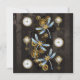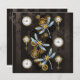 Marcadores e teclas antigas com engrenagens de ouro e latão, decoradas com libélulas mecânicas e boias em fundo castanho e listrado.