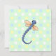 Convite para chá de fraldas bonito com gráficos doces de libélulas coloridas contra um fundo bolinhas colorido. Uma área de texto azul quadrado, definida no meio, tem texto preto que é totalmente personalizável para atender às suas necessidades de evento. Adorável convite aos pais para serem queridos.
