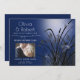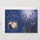 Noivado de Foto Rustic Nature - Sua foto com este tema azul real impressionante, um brilho suave por trás de uma bonito exibição de cattails e gramíneas com libélulas brilhantes brilhando - o dorso é uma cor coordenadora fácil de personalizar modelo - trabalho artístico original da WhimsicalArtwork™ para o BarefootBride ™. Isto é parte de uma suite de artigos de papelaria de casamento, assim como Chás de fraldas, Aniversário e Convites de Natal. Para perguntas ou assistência, entre em contato com o designer indy.designer@yahoo.com.
