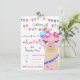 Convites de festa de aniversário do drama da moda lhama, Lhama da moda com óculos rosa e óculos coloridos e grinaldas e balões coloridos