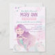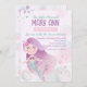 Um convite bonito para sua festa de aniversário de sereia! Com cores brilhantes, roxas e turquesas pastéis e também reluzentes, sua princesa da sereia vai adorar tanto! Também disponível para download e você pode personalizar este convite!