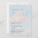 Um elegante, moderno, romântico e sonolento chá de panela Cloud 9 com uma foto de um céu azul macio, sonhador, pastel com nuvens fofinas, pistas de luz solar amarela e brilhante e a palavra Nove em camada transparente surgindo, sugerindo a ideia de flutuar serenamente. Uma ideia perfeita para uma noiva feliz celebrando seus núpcias futuros. A tipografia moderna é complementada pela caligrafia moderna. Simples, elegante e atordoante.