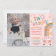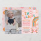 Dois Groovy Boho Retro segundo aniversário Convites Smiley face Groovy One com Photo Hippie