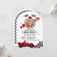 Duas Crianças de segundos aniversários Rápidos Um Carro Vermelho Cute apresenta um bonitinho carro de corrida vermelho com o texto "Crescendo Duas Vezes!" no moderno script de tipografia negra acentuou um carro de corrida vermelho, capacete, bandeiras com controle, balões, confete e o número 2. Adicione sua foto favorita no quadro. Perfeito para as crianças na segunda festa de aniversário. Envie o e-mail ou simplesmente baixe o convite digital compartilhável para download. Projetado pelo Evco Studio www.zazzle.com/store/evcostudio