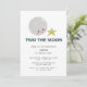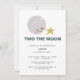 "Dois a lua" convite para segundo aniversário, com a lua kawaii e a estrela. Um convite de aniversário bonito e minimalista. Projetado e ilustrado por Designs Kristine Lee. Para obter mais informações, visite www.kristineleedesigns.com