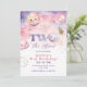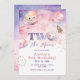 Dois os itens de Correspondência de Convite para segundo aniversário de menina rosa-do-espaço-externo da Lua disponíveis.