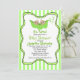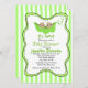 Um convite adorável e lunático do chá de fraldas com um fundo listrado verde e branco, caracterizando bebês gêmeos em um vagem de ervilha.