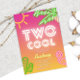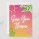 Design de convite vibrante e animado que combina elementos tropicais com cores neon ousadas. É perfeito para eventos como festas de piscina, festas havaianas, celebrações de aniversário ou qualquer ocasião em que você queira injetar um senso de diversão e emoção