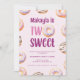 Este convite de aniversário apresenta donuts e "dois doces" para convidar amigos e família para celebrar seu pequeno Torneio 2.
