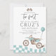 Dois Convites de festas de segundo aniversário de moto azul rápido Todos os designs são © PIXEL PERFECTION PARTY LTD
