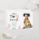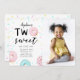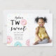 Placa de modelo de segundo convite de aniversário de de um de segundo cômodo para uma festa de aniversário de tema de rosquinha com ilustração de rosquinha com borrachas. O texto no topo diz "dois doces". Personalize este produto adicionando o nome do seu filho, as informações do partido e uma fotografia.