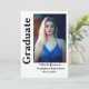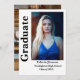 Este convite de festa de graduação moderno e elegante inclui duas fotografias do graduado. Uma na frente e outra atrás. O nome do graduado, escola e ano de turma são escritos em uma fonte preta e branca moderna e casual. Atrás. Um convite de graduação elegante e direto que apresenta as fotos pessoais favoritas do seu graduado.