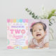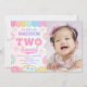Convite Duas fotos doces do segundo aniversário Rainbow