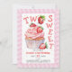 Convite Duas Garota Rosa segundo aniversário Doce Morango
