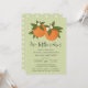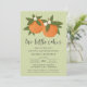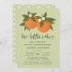 Este adorável convite para chás de fraldas gêmeos apresenta um design de laranjas desenhadas/pintadas manualmente com pequenas flores sobre um fundo de cor personalizado (mostrado no verde limão claro). A tipografia na moda diz: "Duas Pequenas Cuecas" estão a caminho! A parte de trás contém um padrão simples e correspondente de flores de laranja. Excelente para a mamãe esperando o garoto / gêmeos! Trabalho de arte/Ilustração por Tracey Khalei / Orabella Impressões.