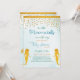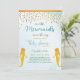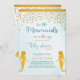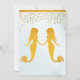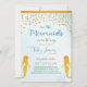 Um convite de Chá de fraldas com o tema "duas pequenas sereias estão a caminho". Na frente, há ouros reluzentes no topo, e as palavras "duas pequenas sereias estão a caminho" e "Chá de fraldas" estão estilizadas. No verso, o mesmo plano de fundo da frente, e também duas silhuetas de brilho de ouro de uma sereia, que você pode mover ou redimensionar clicando em "Editar usando a Ferramenta Design". Se tiver alguma pergunta ou quiser um design semelhante para uma ocasião diferente, sinta-se à vontade para me enviar uma mensagem no Zazzle.