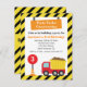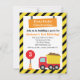 Uma festa de aniversário do tema da construção oferece muita diversão para os aniversários que adoram brinquedos e máquinas de construção porque há tantas ideias de festas com as quais trabalhar neste tema! Escolha esse convite que utiliza muitos elementos temáticos da construção como um caminhão de lixão vermelho e amarelo, um padrão de listras amarelas e pretas, placas de construção e cone. Crianças convidados vão ficar tão felizes e animados para receber este convite!