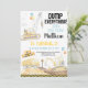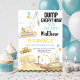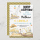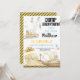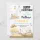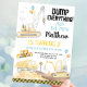 Este belo convite de aniversário inclui caminhões de construção de aquarelas e balões coloridos.