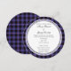O convite personalizável para o casamento escocês através de um dos tartans escoceses do nome Dunlap. As informações personalizáveis do convite de casamento são enquadradas no centro de um convite redondo. Isto é perfeito para casamentos de destino, casamentos com patrimônio familiar ou casamentos temáticos escoceses. Se quiser que outro tartan não seja mostrado aqui, por favor sinta-se à vontade para me enviar uma mensagem. Forneça o número de referência STA para o padrão tartan que você gostaria, se possível.