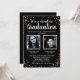 Descubra a elegância dos nossos convites de formatura conjunta que integram lindamente as fotos dos formandos em um fundo preto estiloso personalizável. Adornado com um brilho de confete dourado para marcar a celebração, nosso modelo de dupla celebração moderno e inovador é a maneira perfeita de anunciar seu sucesso iminente. Fáceis de personalizar, esses convites são mais do que apenas cartões; são lembranças.