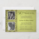 Convites de festa de aniversário de 50 anos de casamento retrô com molduras para duas fotos em um fundo de pergaminho rústico verde vintage simulado e acabamento em damasco. Envie suas fotos e adicione os nomes, data e detalhes. Altere o texto para personalizá-lo facilmente para outras ocasiões especiais e celebrações de marcos felizes -- festas de aniversário de 25, 30, 45, 60, 65, 70 anos, casamentos, salve a data, ou qualquer evento único. Tamanho mostrado: 4,5 x 6,25. Clique em Personalizar para alterar o tamanho e as opções de acabamento do papel.