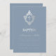 Convite Dusty Blue Baptism Elegante Faux Silver Crest Boy
