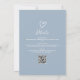 Um convite moderno minimalista para o chá de aspersão para bebês com um coração bonito desenhado à mão, código QR do registro e detalhes de eventos definidos com a tipografia na moda num fundo azul empoeirado. Projetado por Thisnotme©