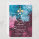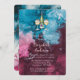 Este belo convite para o casamento mostra uma mistura harmoniosa de azul empoeirado, borrado e matizes cor-de-rosa num design de tinta a álcool a cores-d'água cativante. Os padrões giratórios criam um efeito gradiente, fazendo uma transição sem falhas de azul macio e poeirento no topo para a burgundy profunda no fundo, intercalada com delicadas listras brancas. A textura marmoreada fornece uma canvas luxuosa e artística para seus detalhes de casamento, definindo o tom para um evento inesquecível.